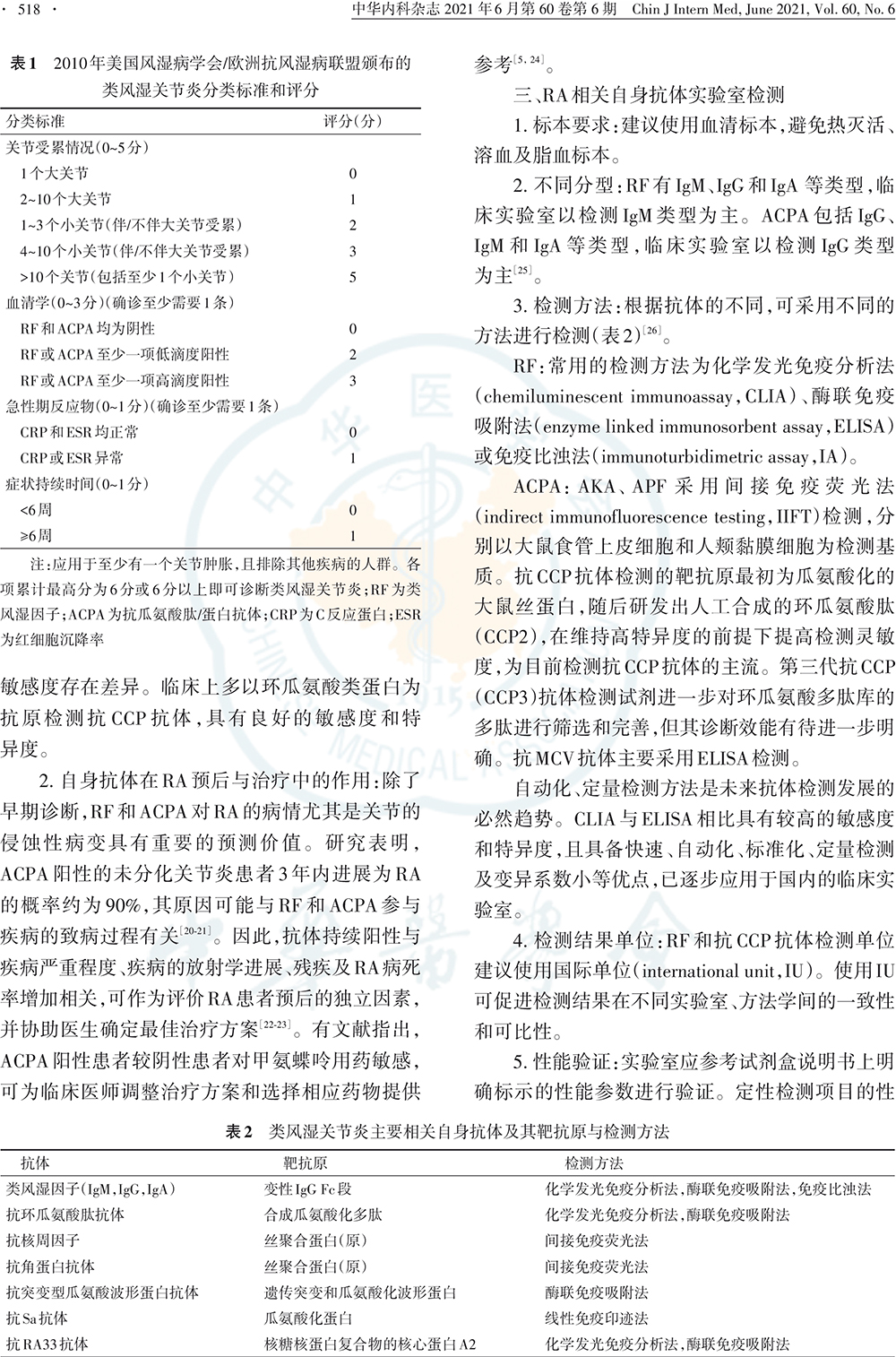 類風濕關節炎相關自身抗體檢測的臨床應用專家共識