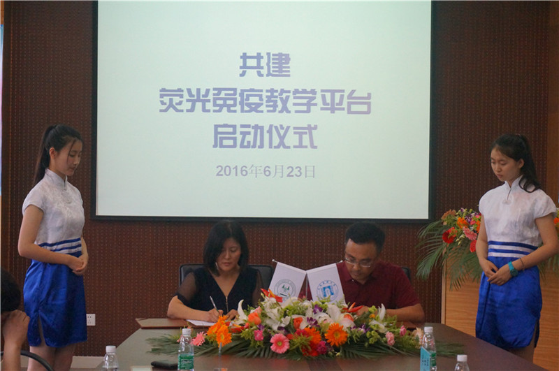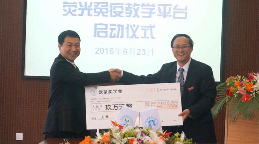 近日,歐蒙學(xué)院攜其“高校聯(lián)盟”項目來到大連醫(yī)科大學(xué)檢驗醫(yī)學(xué)院,雙方在歐蒙獎學(xué)金和熒光免疫教學(xué)平臺共建領(lǐng)域展開深入合作,“大連醫(yī)科大學(xué)檢驗醫(yī)學(xué)院-歐蒙學(xué)院簽約暨共建熒光免疫教學(xué)平臺啟動儀式”也于2016年6月23日上午隆重舉行。