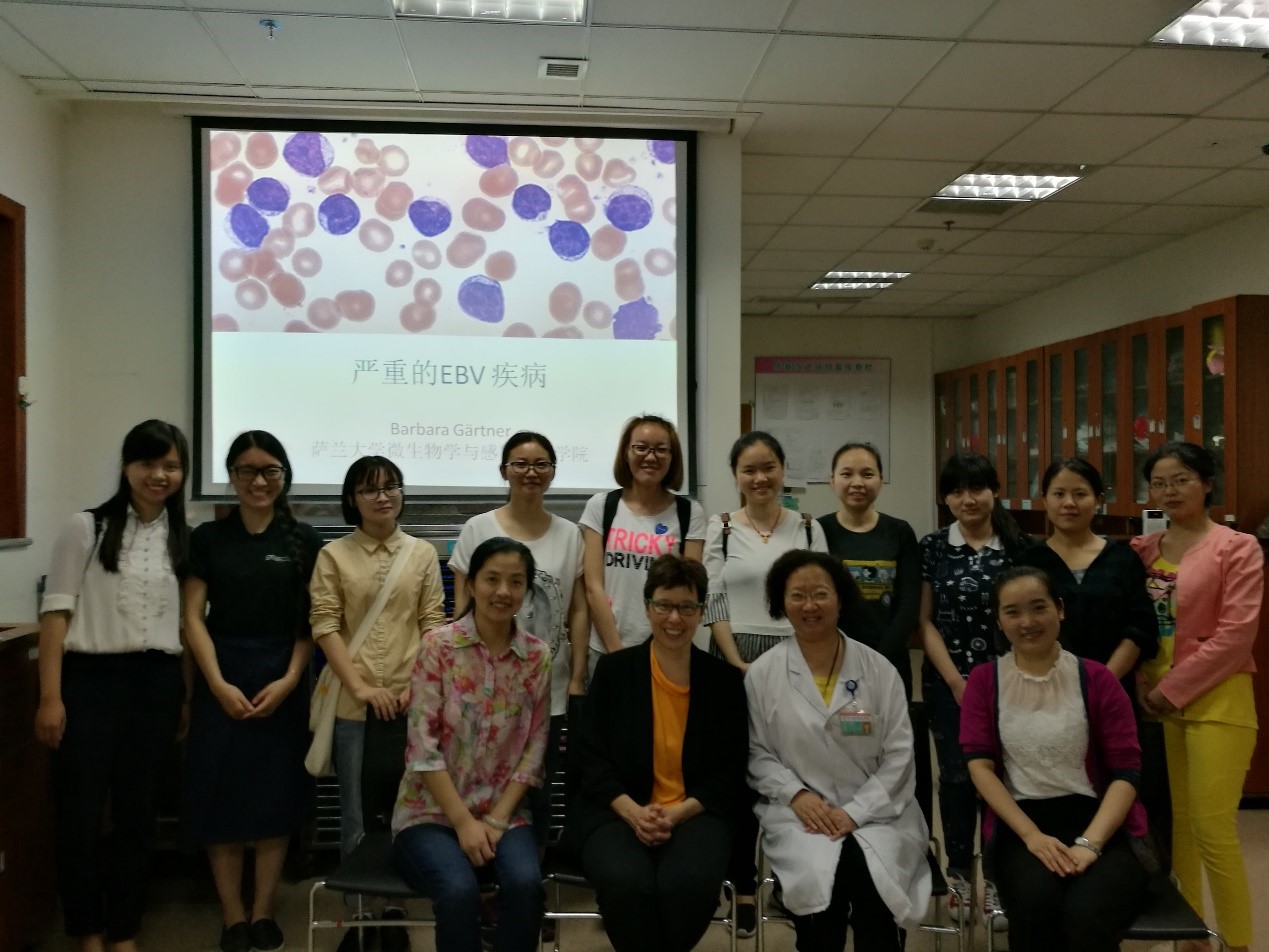 繼2016年邀請德國維滕私立綜合大學Rostasy教授舉辦“兒童神經系統自身免疫病中外專家學術交流”巡講,收到強烈反響后,歐蒙學院再次于2017年6月10日到19日邀請到德國薩爾州立大學微生物學系主任Gartner教授來華舉辦以“EBV學術研討會”為主旨的學術巡講活動。本次巡講分設四個站點,分別是北京兒童醫院、重慶醫科大學附屬兒童醫院、上海市兒童醫院及浙江省兒童醫院,巡講活動共有來自9家醫院感染科、呼吸科、檢驗科、兒科、消化科、內科、血液科、ICU、腎臟風濕科等十多個科室,共計150余位醫生參與!
