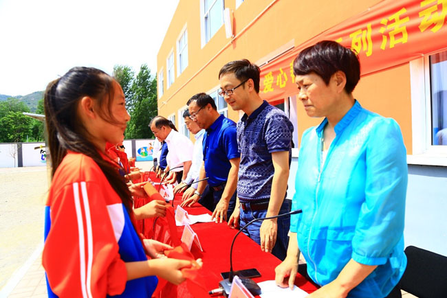 與志愿者們共同見證主題為 “追夢同行 預見未來”的愛心幫扶公益行動在葫蘆島市南票區村小落地生根的領導和嘉賓有:歐蒙醫學診斷(中國)有限公司亞太區總裁李川先生、中共葫蘆島市南票區委書記郭毅同志、歐蒙醫學檢驗所總監張欣先生、南票區政府副區長趙婧同志、中國科學院心理研究所、中國科學院大學王晶教授、南票區教育局局長樊漢權同志、中共缸窯嶺鎮黨委書記吳春雷同志、南票區政府教育督導室主任孫世俠同志、南票區全民健身指導中心主任馬良同志。