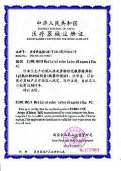 2011年3月,歐蒙公司生產(chǎn)的過敏原產(chǎn)品——吸入性及食物性過敏原特異性IgE抗體檢測(cè)試劑盒正式獲得國(guó)家食品藥品監(jiān)督管理局頒發(fā)的醫(yī)療器械注冊(cè)證。歐蒙過敏原產(chǎn)品具有如下優(yōu)勢(shì):