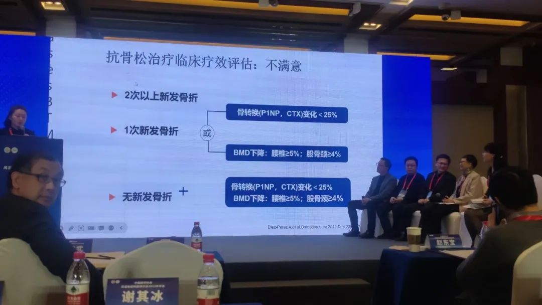 謝其冰教授還強調(diào)了在疾病診斷和治療過程中,至少選擇一個骨形成標(biāo)志物和一個骨吸收標(biāo)志物;疾病隨訪、療效監(jiān)測時應(yīng)檢測同樣的BTMs;目前國際上多推薦P1NP為首選骨形成標(biāo)志物,β-CTX為首選骨吸收標(biāo)志物。冬梅教授指出β-CTX治療中期望值為最少降低>35%,P1NP至少升高>40%;如果二者在治療監(jiān)測中變化程度<25%,則認(rèn)為抗骨質(zhì)疏松療效不滿意。