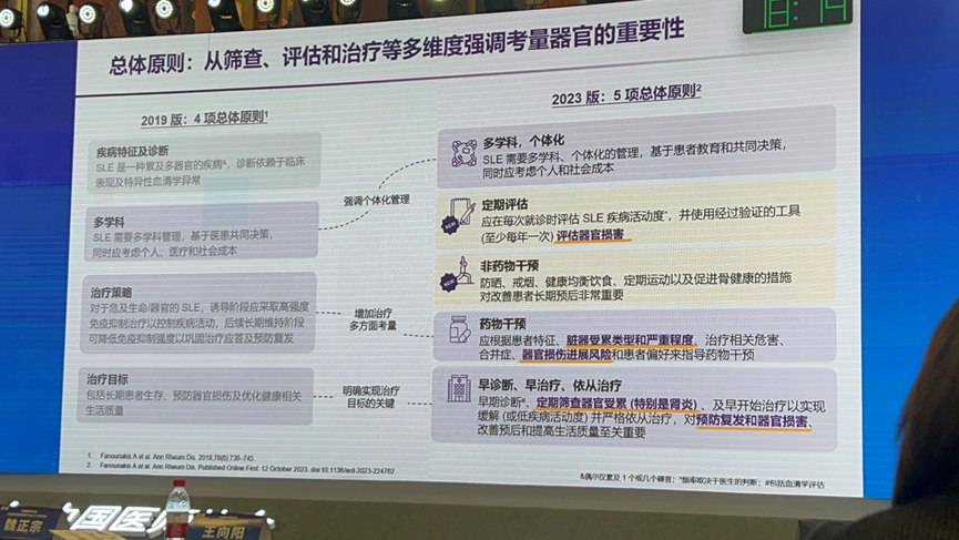 2023年EULAR SLE管理建議解讀中,楊娉婷教授指出SLE管理的總體原則是從篩查、評估和治療等多維度強調(diào)考量器官的重要性。建議應(yīng)在每次就診時評估SLE疾病活動度,并使用經(jīng)過驗證的工具,至少每年一次評估器官損害。SLE以腎臟受累最為常見,需引起足夠的重視。實現(xiàn)治療目標(biāo)的關(guān)鍵是早診斷、定期篩查器官受累,及早開始治療以實現(xiàn)緩解并嚴(yán)格依從性治療,這對預(yù)防復(fù)發(fā)和器官損害、改善預(yù)后和提高患者生活質(zhì)量至關(guān)重要。