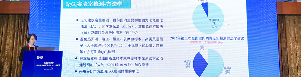 在《免疫球蛋白G4檢測的臨床應(yīng)用專家共識》主題報告中,李教授指出IgG4存在于多種疾病中,具有免疫調(diào)節(jié)作用,在自身免疫性疾病中,抗原特異性IgG4通過阻斷機制直接致病,例如RA中,IgG4本身可能成為靶向IgG4鉸鏈區(qū)的自身抗體的靶點。