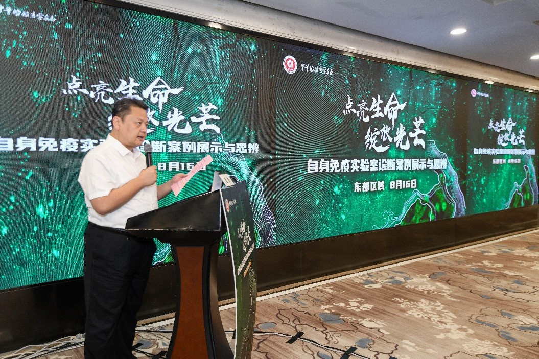 中華檢驗(yàn)醫(yī)學(xué)雜志編輯部唐棟編輯代表主辦方致歡迎詞,向關(guān)注和支持案例思辨與展示活動(dòng)的業(yè)界同仁表達(dá)了誠(chéng)摯的感謝,特別感謝東部區(qū)域主席沈瀚教授以及各位講課專(zhuān)家、指導(dǎo)專(zhuān)家對(duì)活動(dòng)的大力支持。唐棟編輯表示,此次活動(dòng)通過(guò)案例思辨與深入的分析探討,展現(xiàn)專(zhuān)業(yè)智慧,激發(fā)創(chuàng)新思維,促進(jìn)檢驗(yàn)與臨床深度對(duì)話(huà)與融合,凝練并傳播優(yōu)秀實(shí)踐經(jīng)驗(yàn),共同探索提升自身免疫性疾病診療水平的新路徑,最終惠及廣大患者。