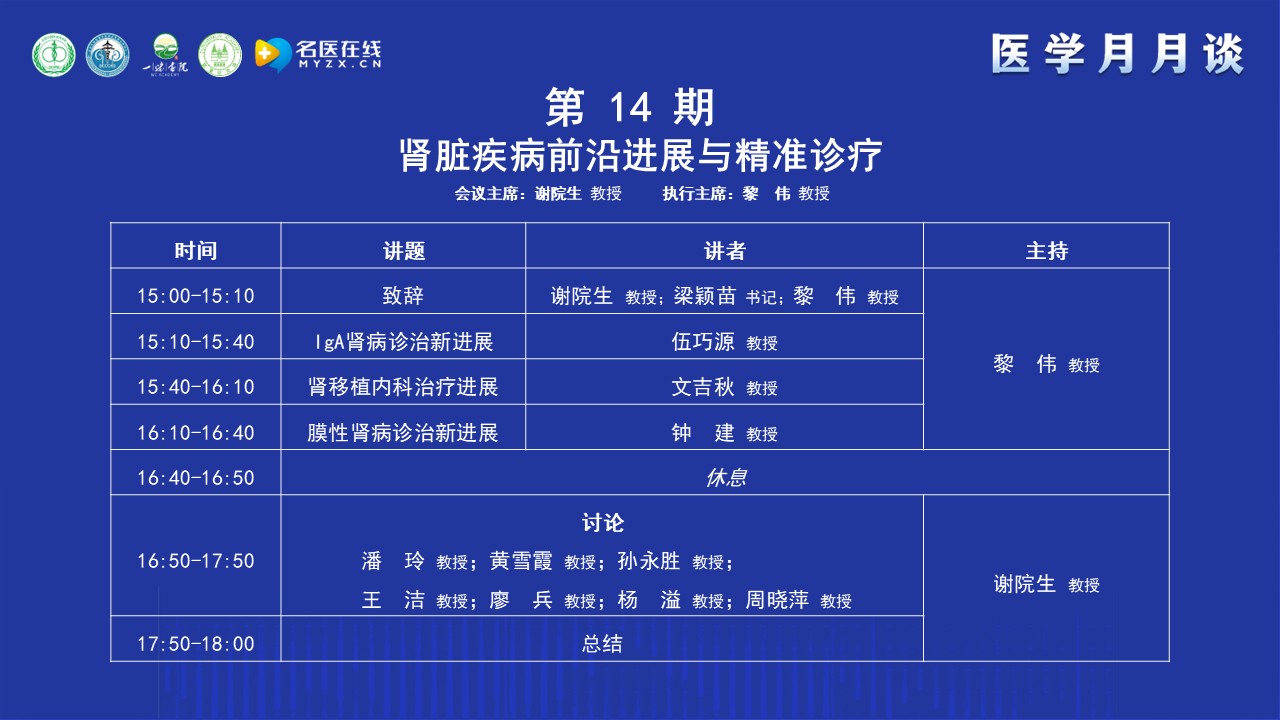謝教授代表北京中西醫(yī)結(jié)合學(xué)會腎臟病專業(yè)委員會、北京中西醫(yī)結(jié)合腎臟疑難病會診中心以及一味書院對各位專家、各位同仁及各位朋友參加第14期“醫(yī)學(xué)月月談”的學(xué)術(shù)交流活動表示熱烈的歡迎和衷心的感謝。
