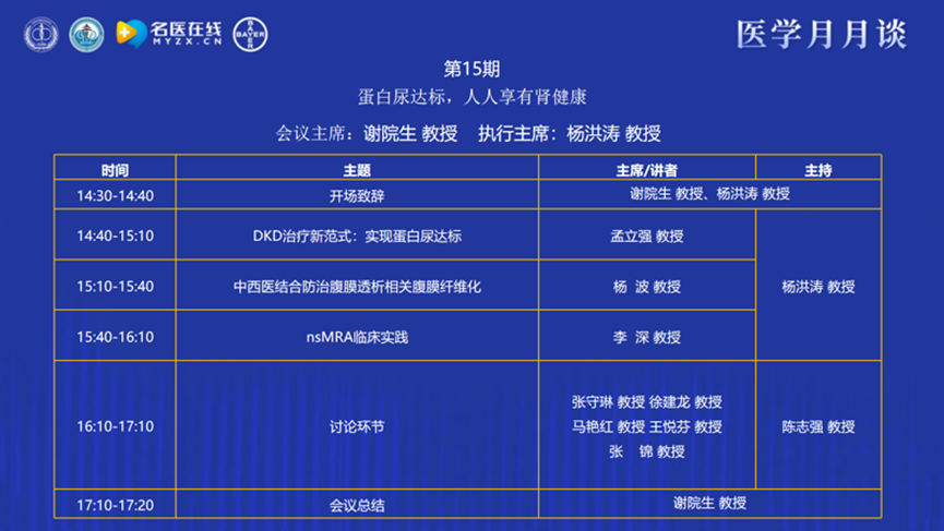 今天是第15期“醫學月月談”,舉辦地是天津,執行主席是天津中醫藥大學第一附屬醫院原腎病科主任、中華中醫藥學會腎病專業委員會名譽主任委員楊洪濤教授,本期的主題是“蛋白尿達標”。希望通過今天的交流,能夠進一步凝聚共識、拓寬思路,為臨床實踐帶來切實的啟發和幫助,為更多慢性腎臟病患者帶來健康與希望。