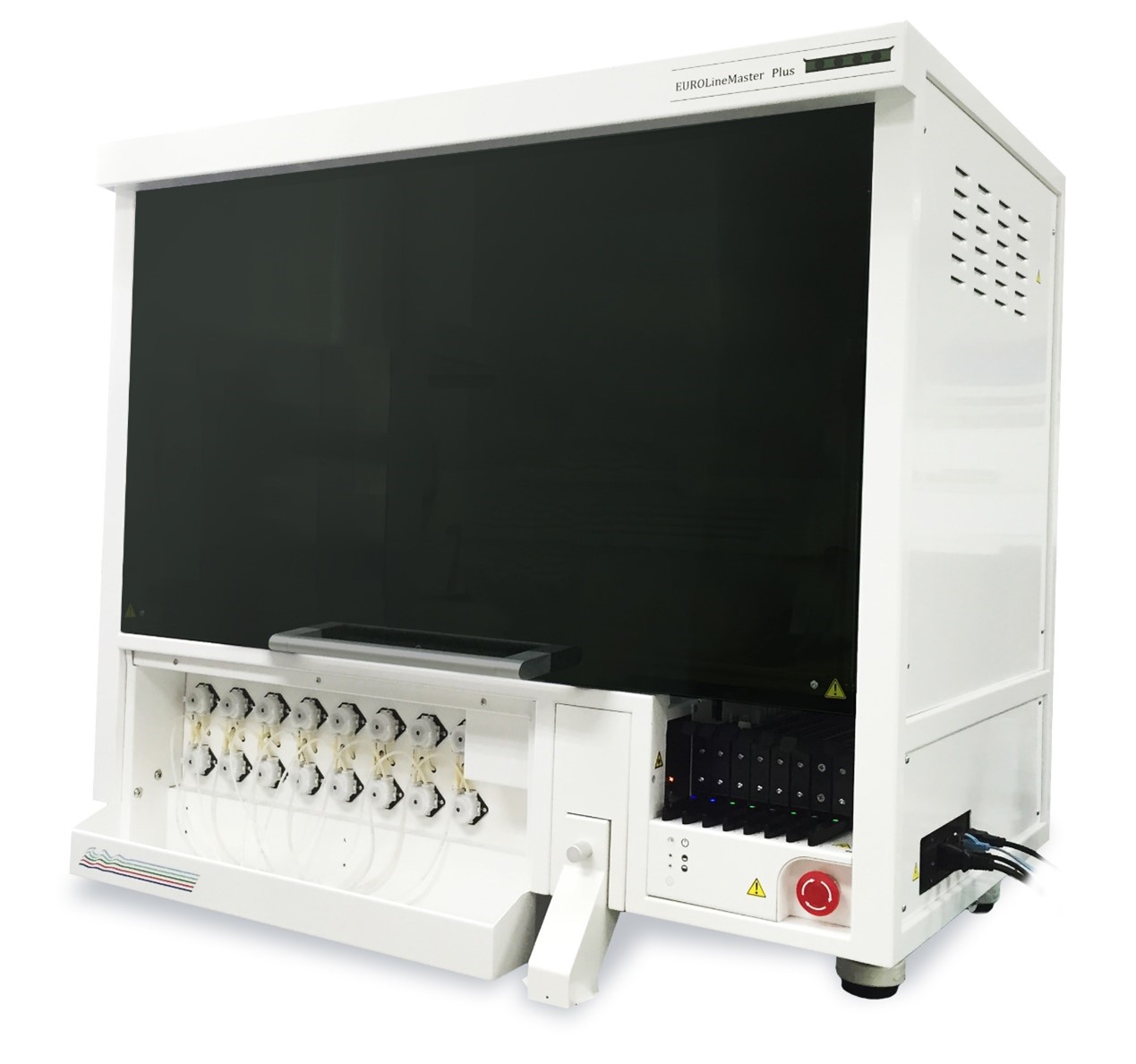 EUROLineMaster Plus-A全自動(dòng)免疫印跡檢測(cè)系統(tǒng)采用歐蒙最新的高通量多參數(shù)免疫檢測(cè)技術(shù),是目前使用更先進(jìn)、應(yīng)用更成熟的一個(gè)多指標(biāo)檢測(cè)技術(shù)平臺(tái)。儀器具備16個(gè)試劑通道,可在一次檢測(cè)運(yùn)行中,組合自身免疫、過(guò)敏原和感染診斷領(lǐng)域的檢測(cè)??蓪?shí)現(xiàn)從加樣到結(jié)果輸出的全自動(dòng)操作及全流程管理,實(shí)現(xiàn)從樣本識(shí)別、樣本稀釋、所有孵育及清洗過(guò)程,到自動(dòng)成像、圖像分析與處理的全自動(dòng)操作,最終出具可自定義的檢測(cè)報(bào)告,可真正實(shí)現(xiàn)無(wú)人值守。
